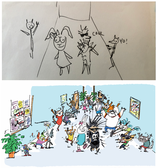 Ez a rövid képregény iskolás közegben játszódik, nem véletlenül. Amikor a pályázatot kiírták (és a 6-12 éves célközönséget kijelölték), lányom éppen csak elkezdte az első osztályt. Olyan pályázatot szerettem volna leadni, amelyet egy első osztályos gyerek elakadás nélkül el tud olvasni. Egy nagyon egyszerű történetet arról, hogy a bátorság és a helyünk keresése kifizetődő, akkor is, ha minden idegennek és újnak tűnik.